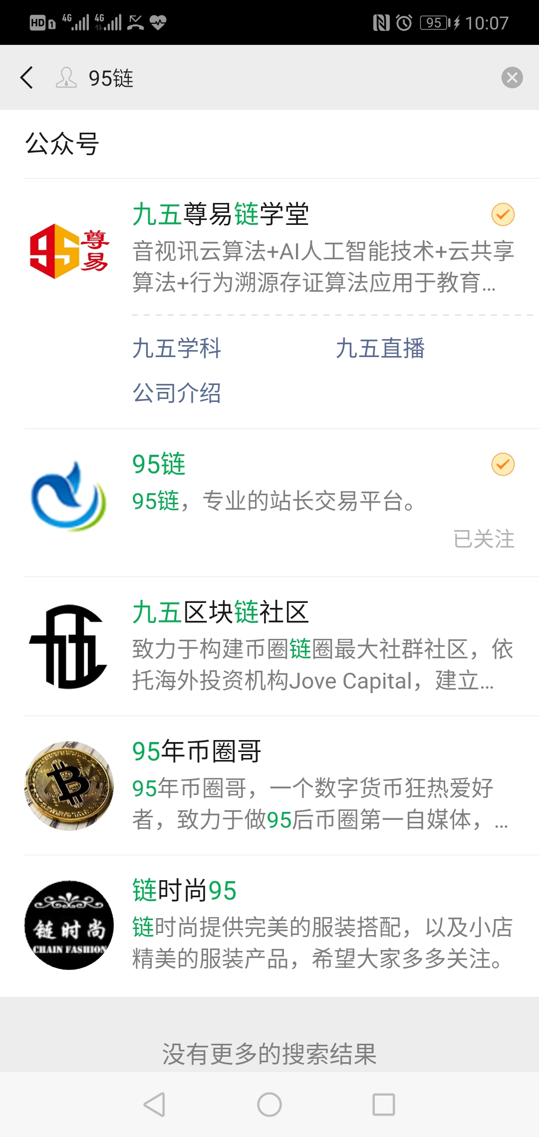2. 在微信中搜索95鏈公眾號關(guān)注(如果已掃碼關(guān)注,此步請忽略)。